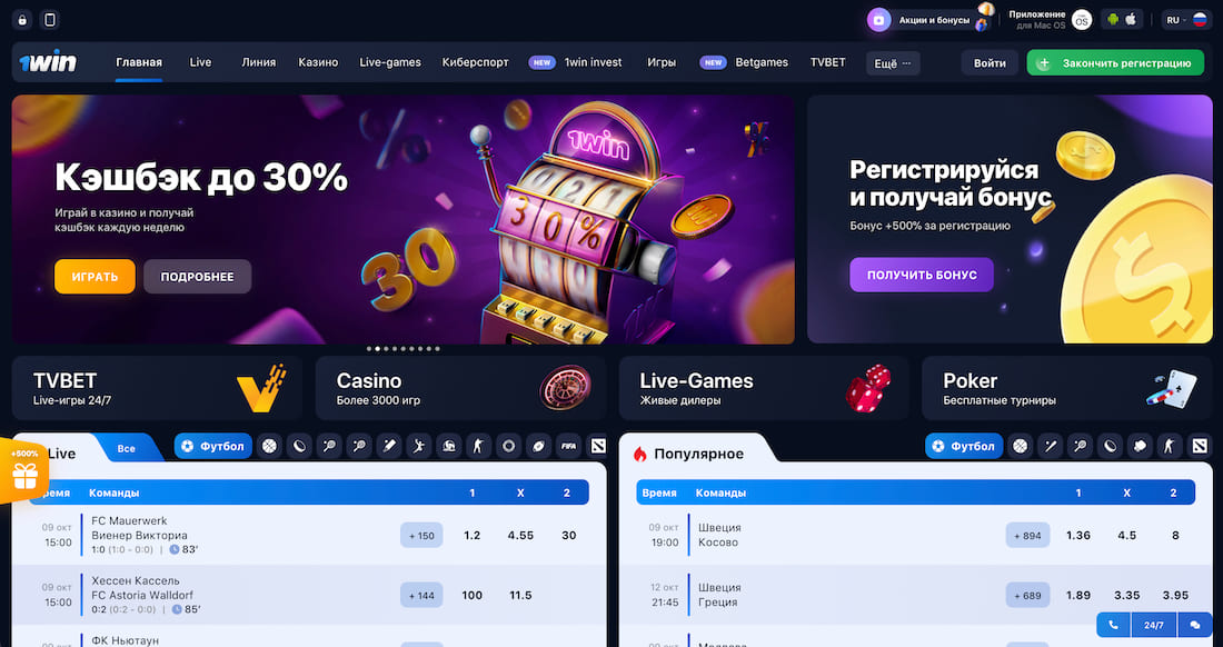 Азартным игрокам, которые ищут универсальную онлайн платформу для развлечений, следует остановить свой выбор на букмекерской конторе 1Вин. Здесь есть все, чтобы выполнить требования самых взыскательных пользователей – полноценная букмекерская часть и широкий ассортимент игр казино. Регистрация на веб-сайте откроет доступ ко всем возможностям БК 1Win, а также позволит воспользоваться бонусными предложениями.